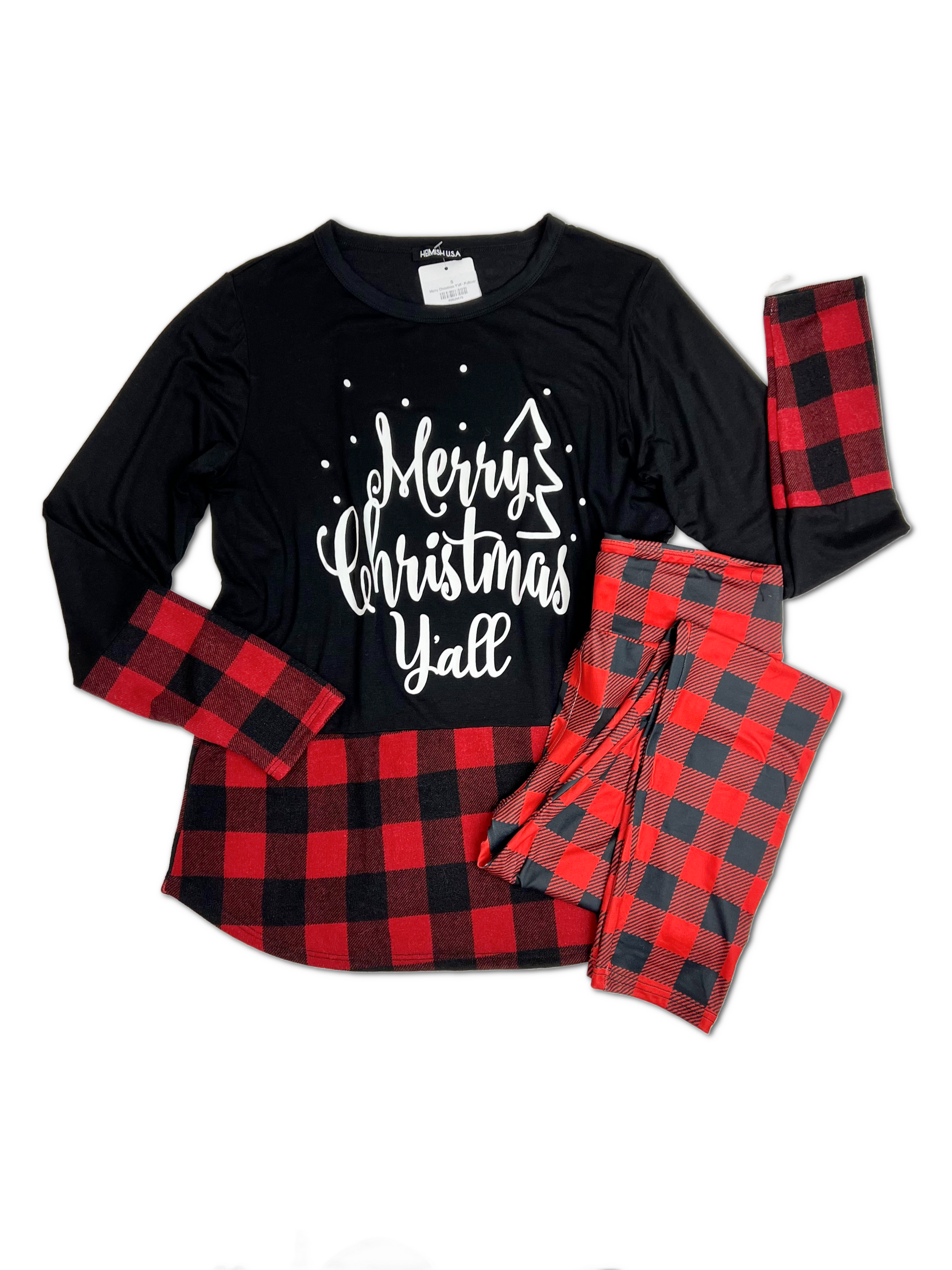 Spread some holiday cheer this season with our 'Merry Christmas Y'all' Pullover! This cozy top features a solid black body with a plaid contrast and long sleeves to keep out the chill. The round neckline is finished off with a bold Merry Christmas Y'all Print - so everyone will know you're ready to celebrate! Ho Ho Ho!