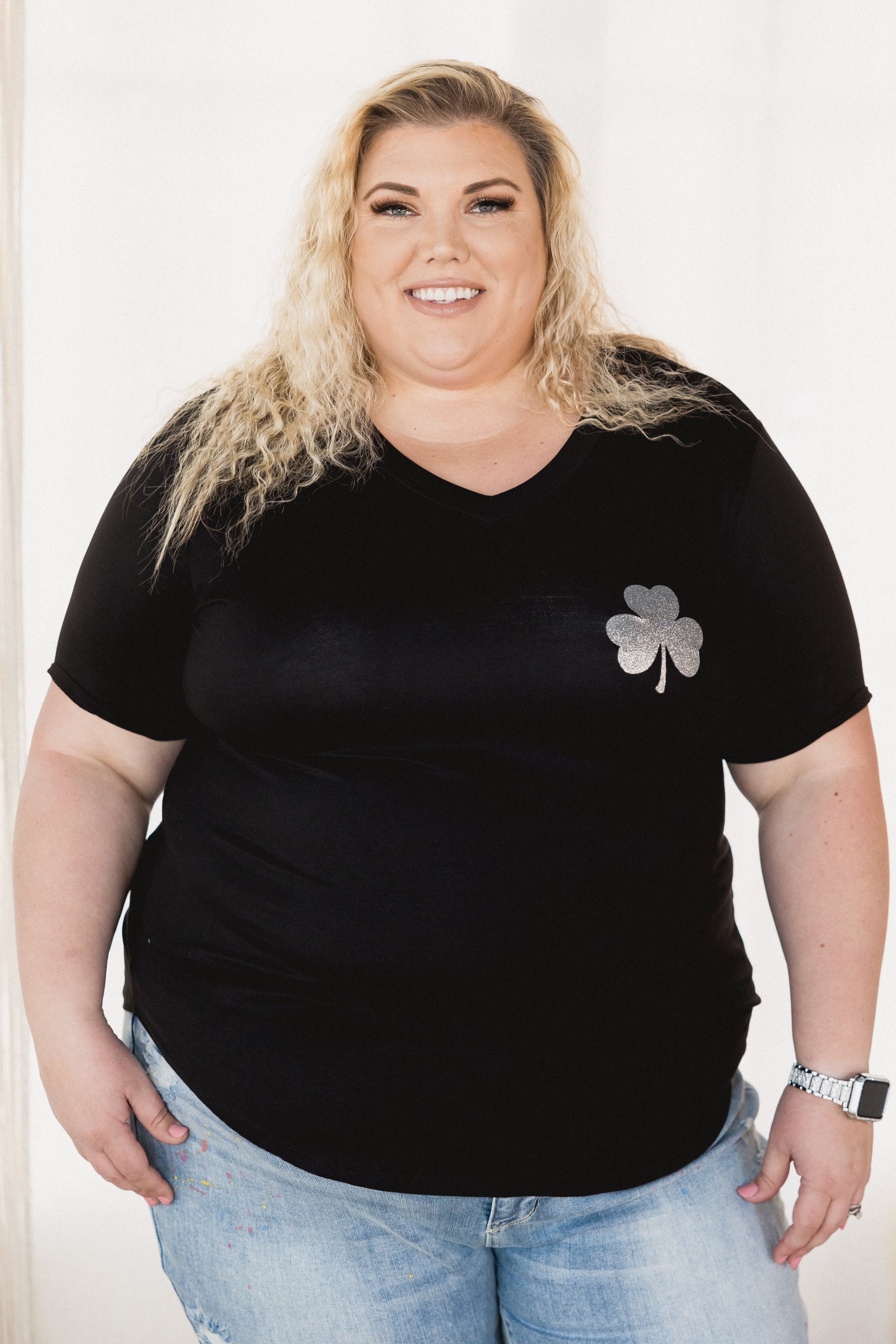 Wear that clover patch proud, in this super soft jersey knit short sleeve. With a relaxed fit, this top features a v-neck, short sleeves and rounded hem.