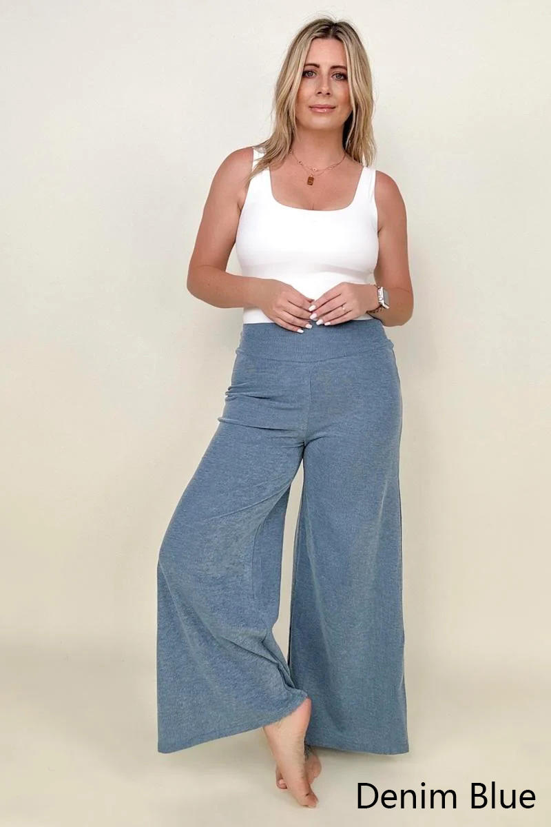 Petal Dew Solid Wide Waistband Wide Leg Pants