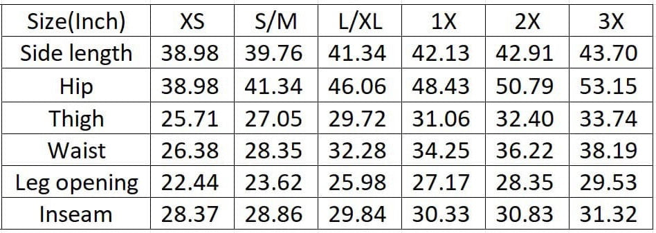 Sizing: