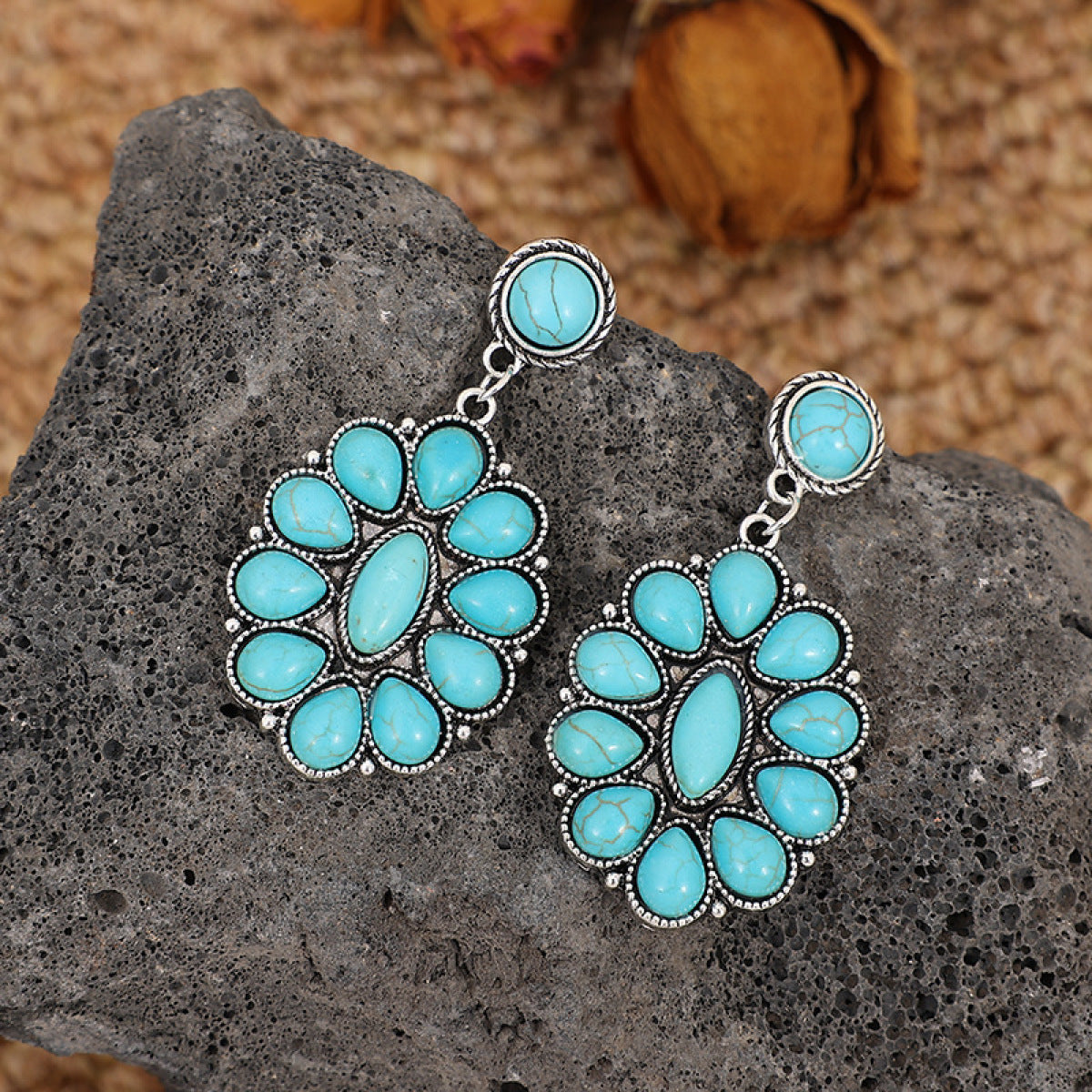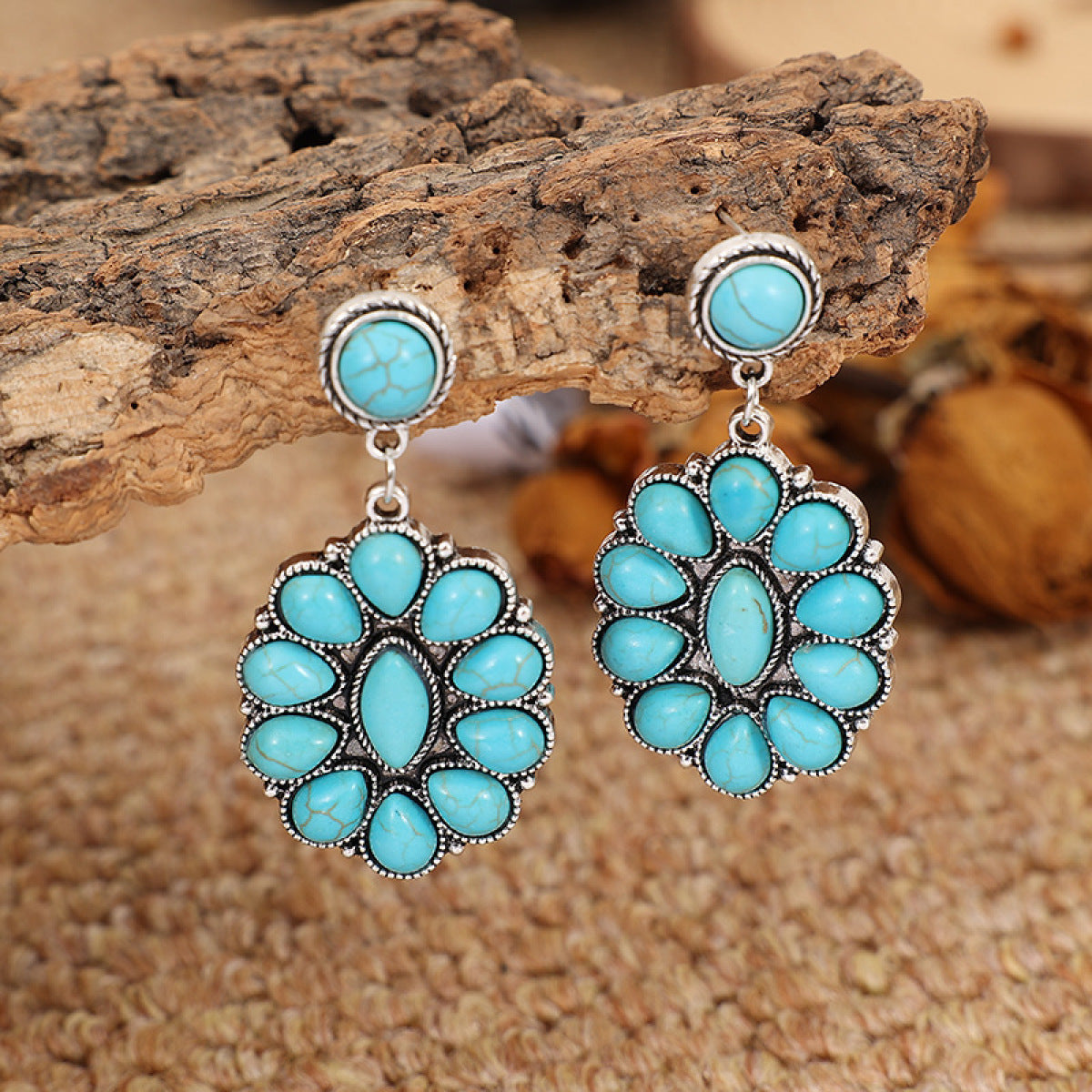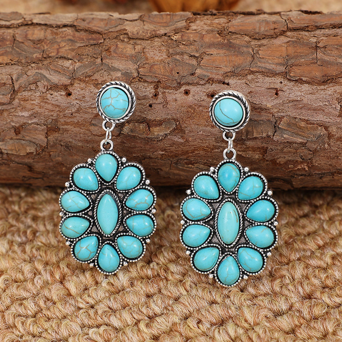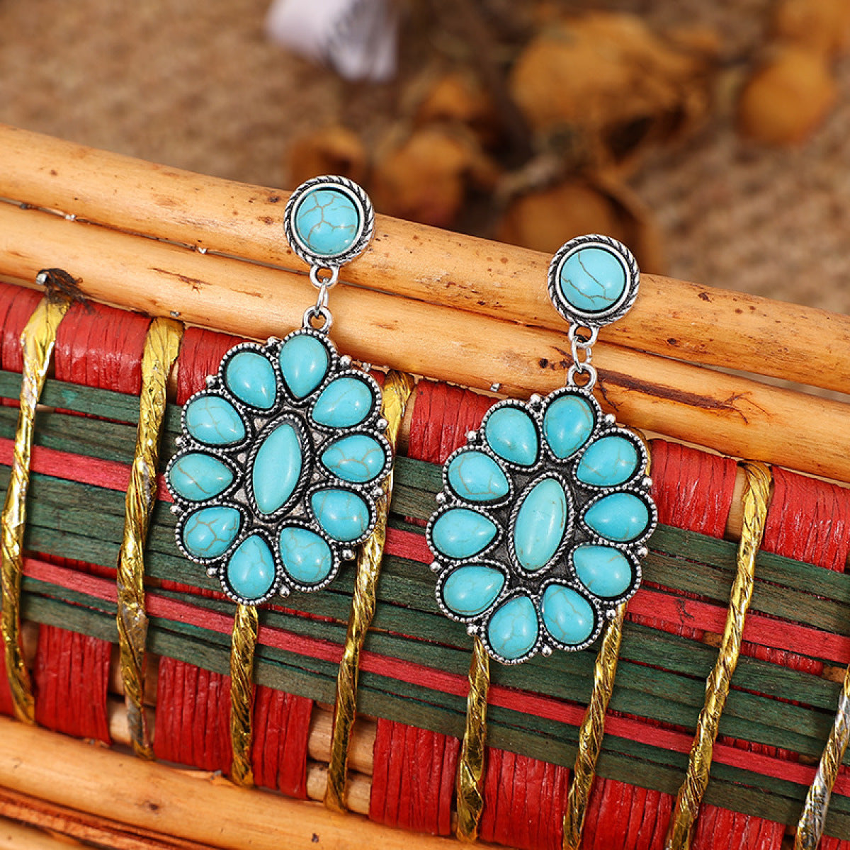 Retro Turquoise Geometric Dangle Earrings