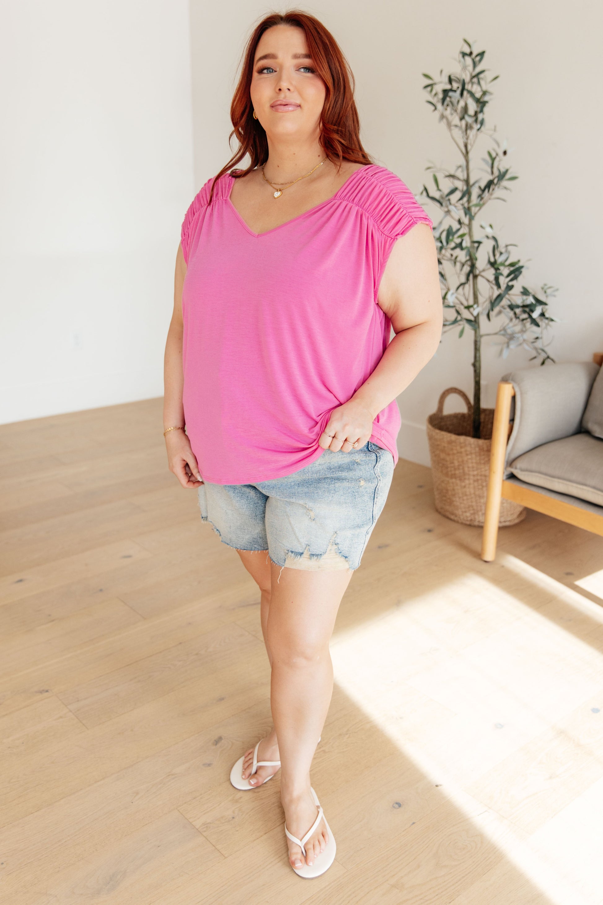 Ruched Cap Sleeve Top in Magenta