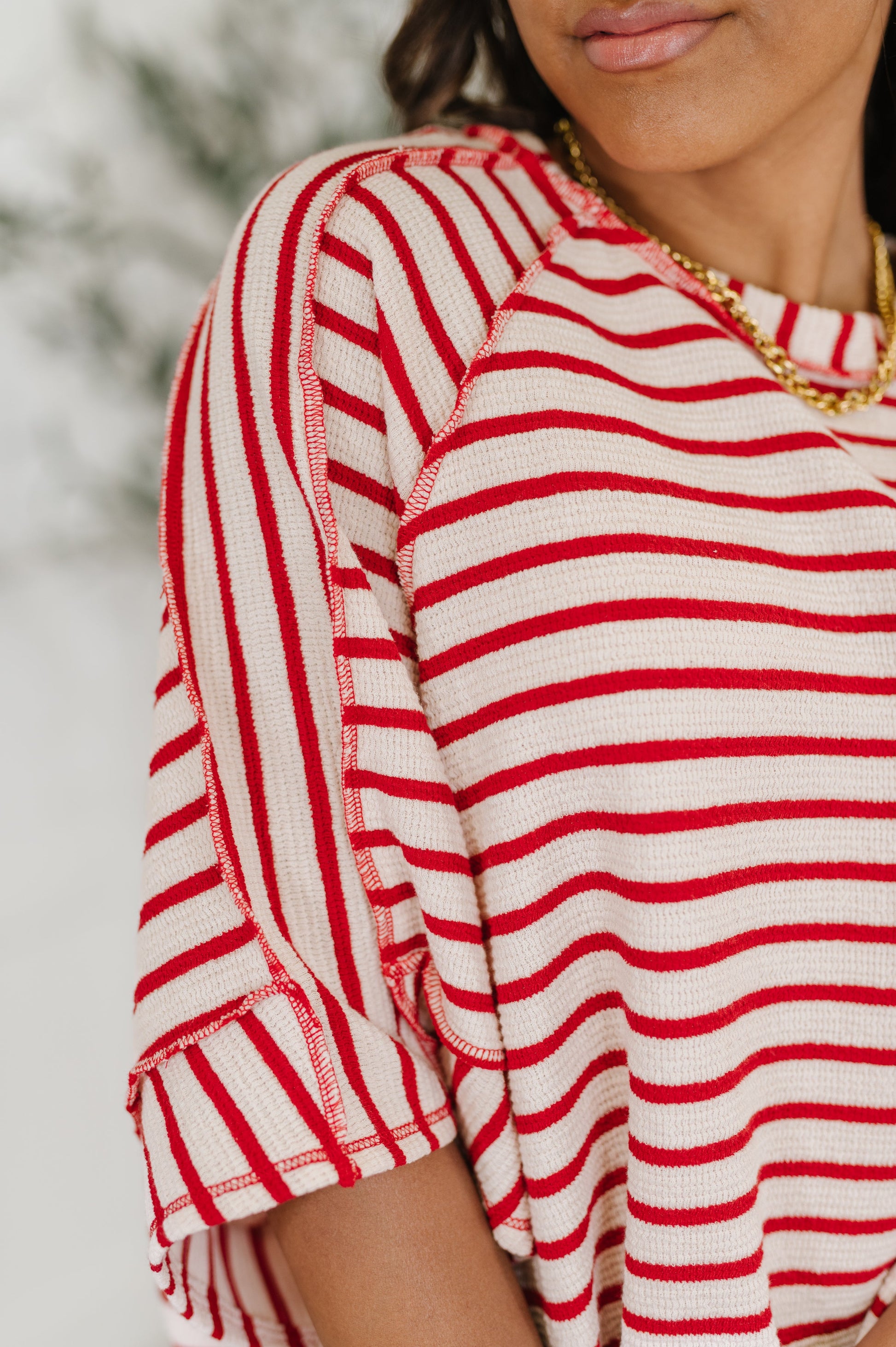 The Sass in Session Relaxed Top in Cream Red brings effortless charm with its textured knit and relaxed fit. Featuring a banded round neckline, raglan sleeves, and exposed seam details, this top adds a fun twist to your everyday look. The small side slit keeps it breezy and playful for all-day comfort.