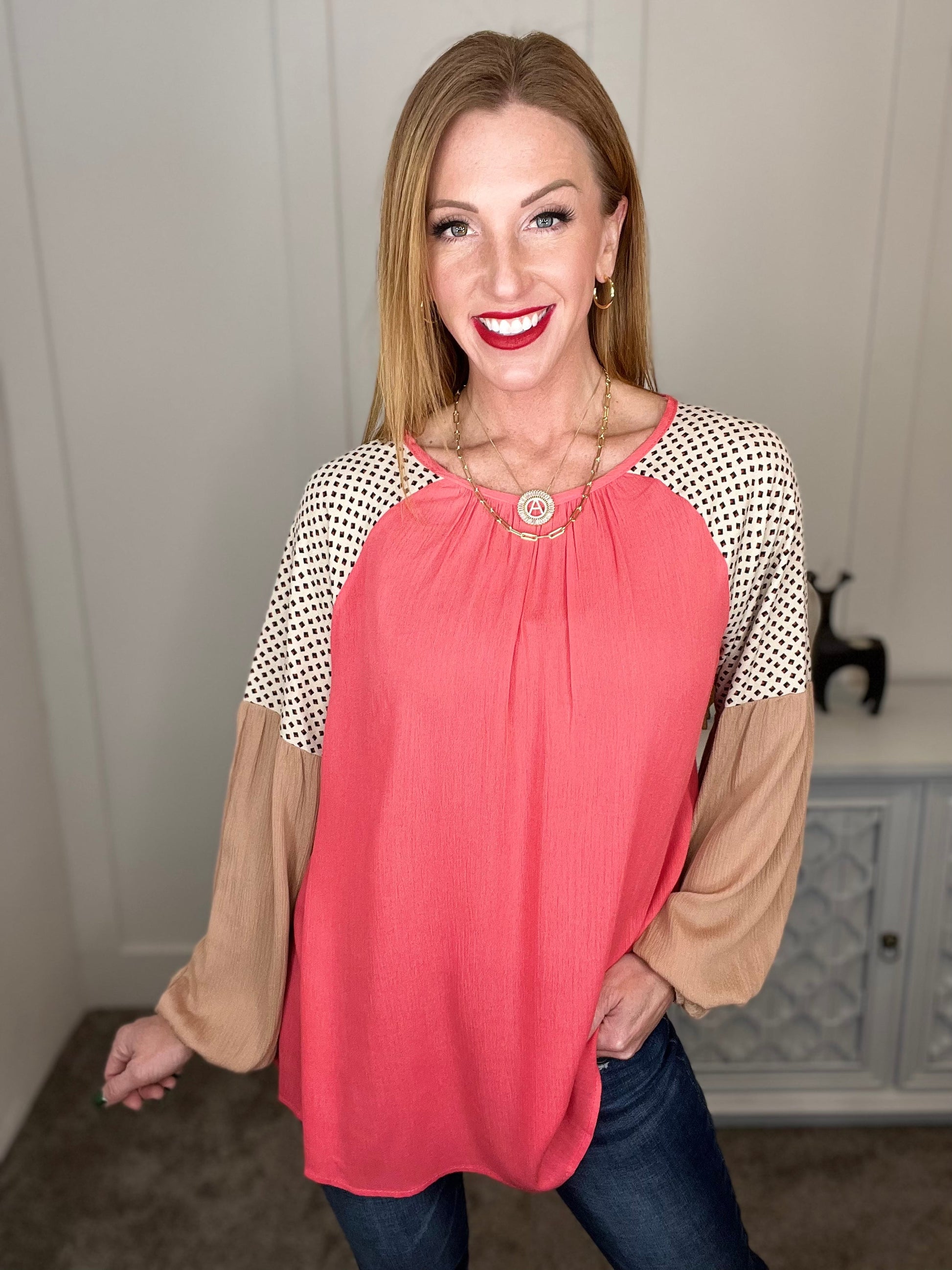 - Color Block Detail with Keyhole Detail on Back of Neck