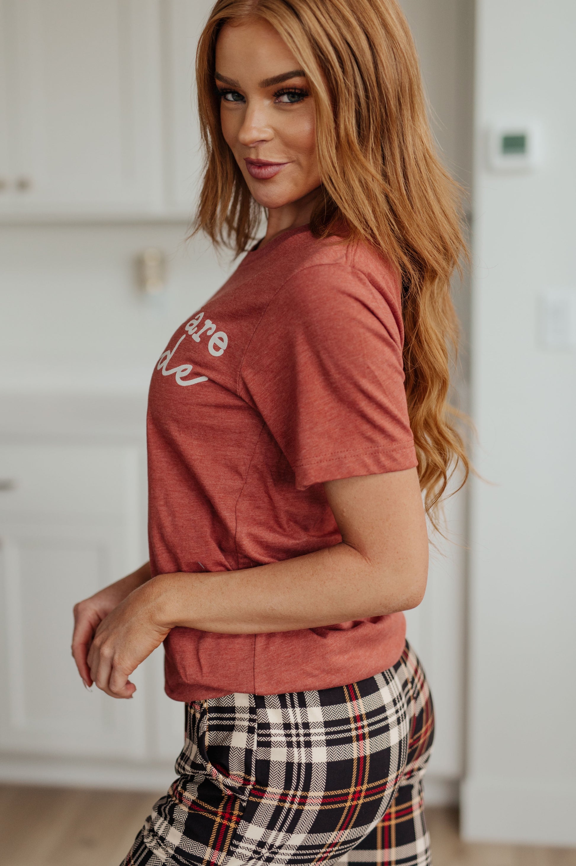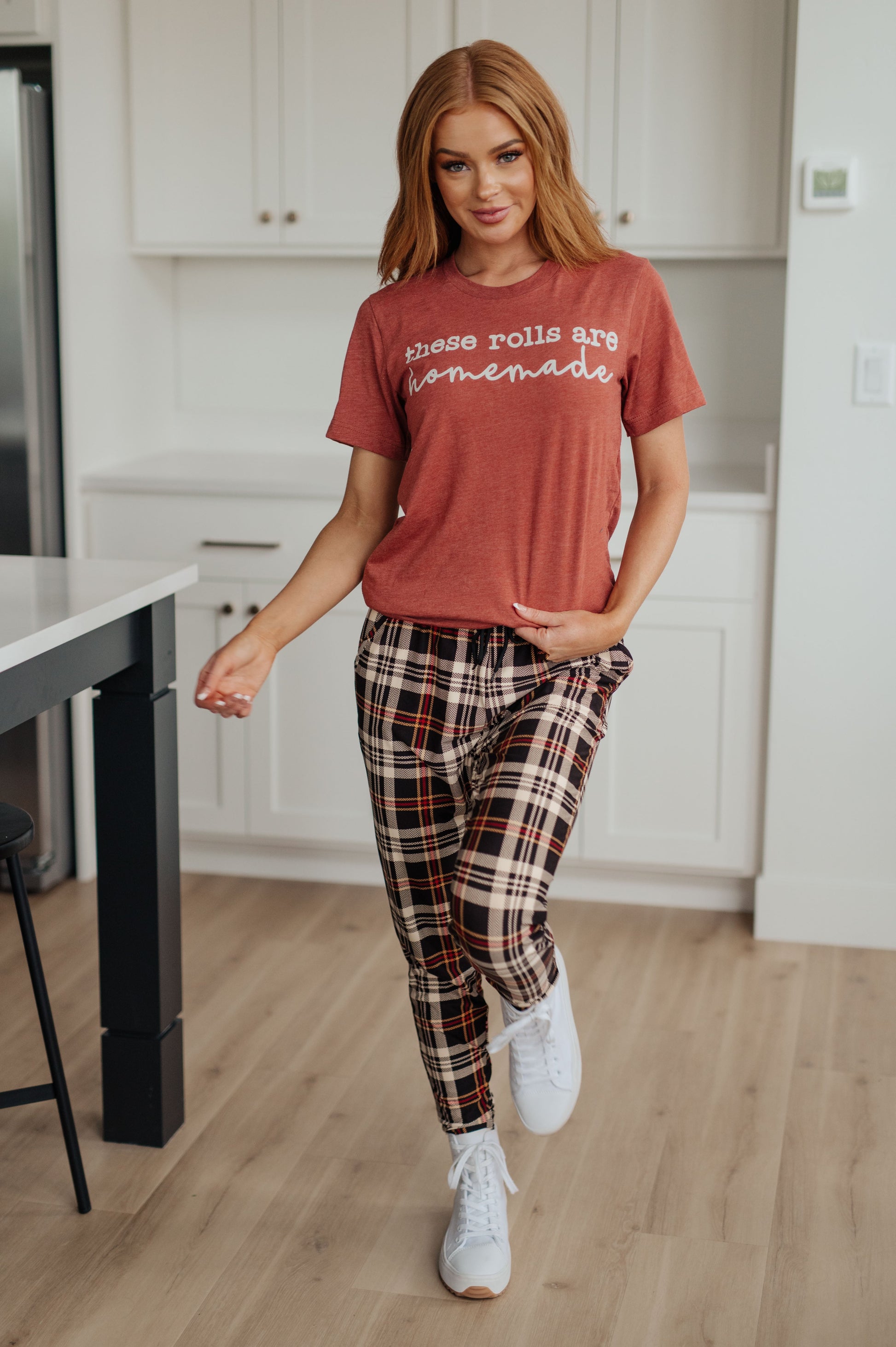 Introducing our "These Rolls Are Homemade" Graphic Tee – this short-sleeved tee pairs perfectly with our lounge joggers, creating a cozy ensemble for lounging around the house after enjoying that Thanksgiving dinner with the family!