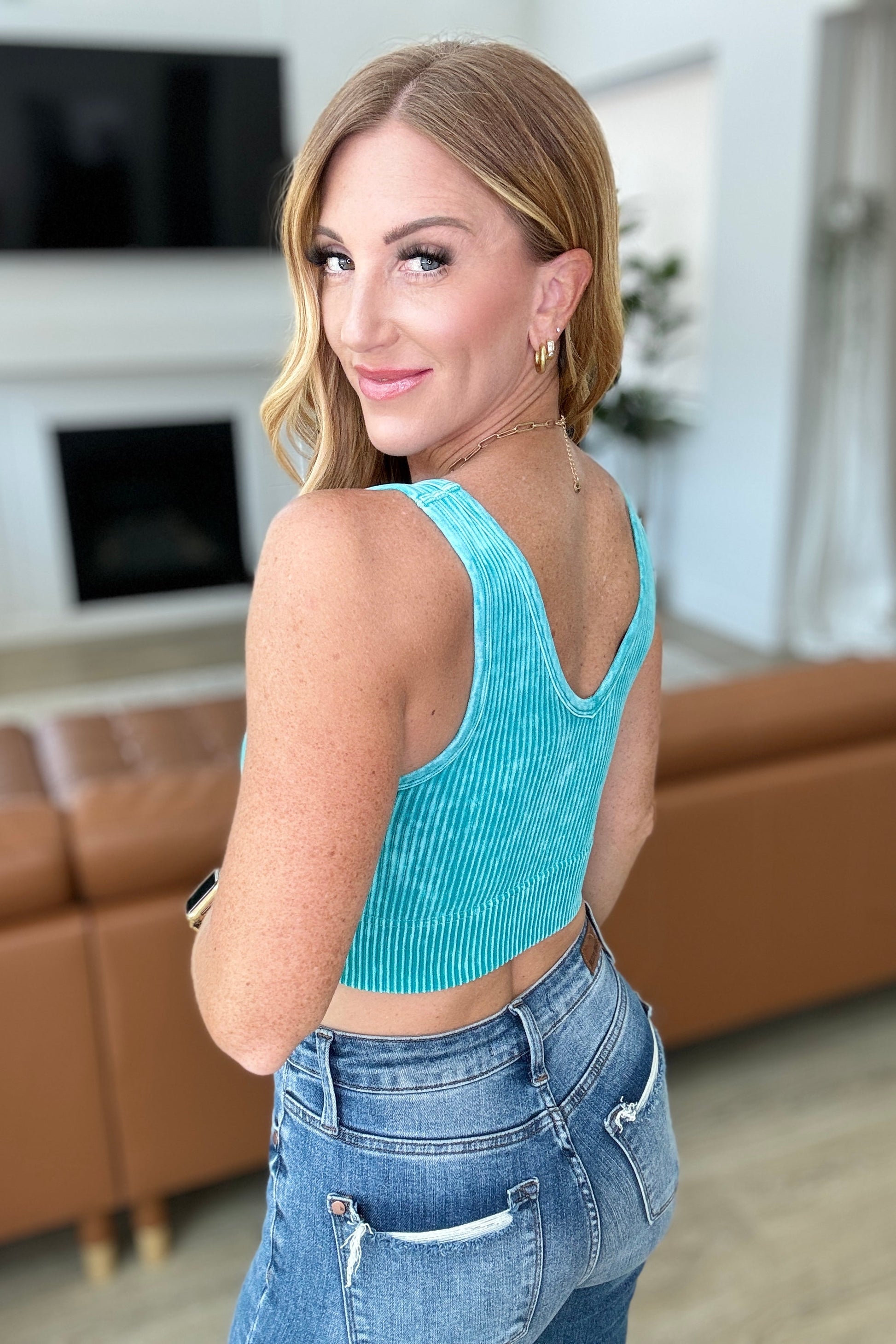 When and Where Reversible Ribbed Cropped Tank in Light Teal