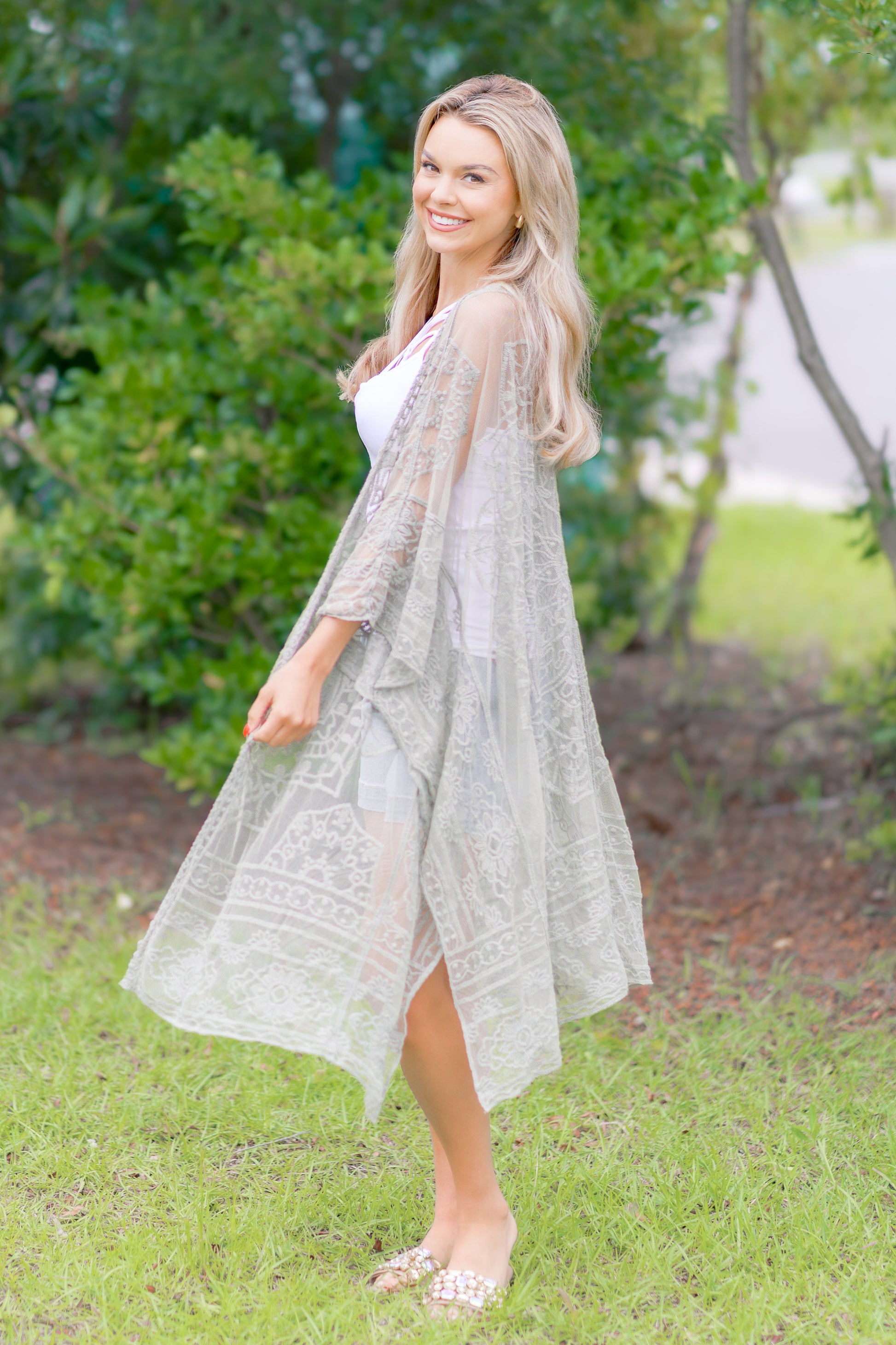 Unleash your inner bohemian with our Whispering Sage Kimono! This lightweight, sheer kimono boasts floral mandala embroidery for a festival-ready look. Choose from multiple colors and wear it as a chic cardigan or beach cover-up. The delicate lace and mesh design add a touch of elegance to any outfit. Dress it up or down - this versatile kimono is a must-have for any fashionista!
